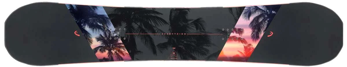 Hybrid Camber DCT 2.0 – The new hybrid construction DCT 2.0 has the nickname “autopilot” for a reason. The board has four added con-tact points with the snow, paired with a longer effective backside edge. This assures a perfect position, resulting in optimized control in all conditions, which makes carving as easy as slopestyle.Hybrid Camber– Hybrid Camber Pop– This build features an elevated flat section and a slight rocker in tip and tail, combining edge hold with pop and float.Hybrid Camber DCT– Features a mix of regular and flat camber and a tapered, narrow waist for increased torsional flex. Outstanding edge hold comes from the camber under the bindings, while flat camber between delivers responsive fun.Flat Rocker– Rocker–More Head Rocker Type Options
