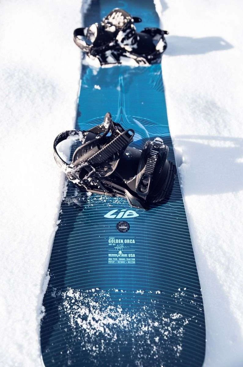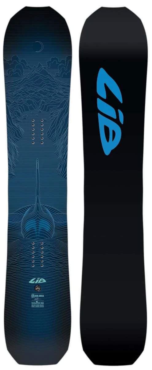 Power predator in both directions. Travis took his Orca learnings and merged them with his elite high performance snowboard world freestyle tour dreams to come up with this supreme Orca freestyle evolution. The long floaty Orca nose loves pow. A directional C2 contour rips resort, trenches hardpack carves and blasts off mountainous side hits. A brand new long floaty switch friendly power kink tail rides short powerful and poppy on hardpack but floats like a dream through switch freestyle takeoffs and landings. The beloved Orca merges with magical T. Rice Pro and manifests a golden power beast.