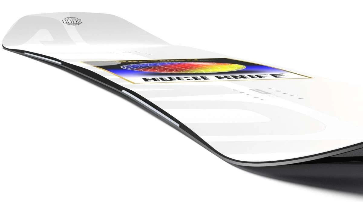 The Huck Knife is a true twin freestyle snowboard built for jumps, transition, and rails. This true park board features Quad Camber and a versatile flex for precise take-offs and landings. Natural flex and snap are enhanced by Popster Booster, while Royal Rubber Pads are placed in the sidewall to ensure smooth ride on firm snow and big jumps.